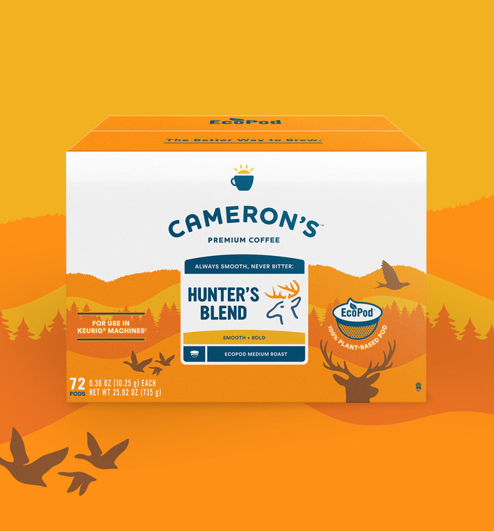 A smooth, bold medium roast made for hunters and early risers alike. Enjoy rich flavor and three collectible bag designs featuring deer, duck, and grouse.